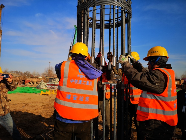 1.上部钢筋笼与下部钢筋笼定位待安装