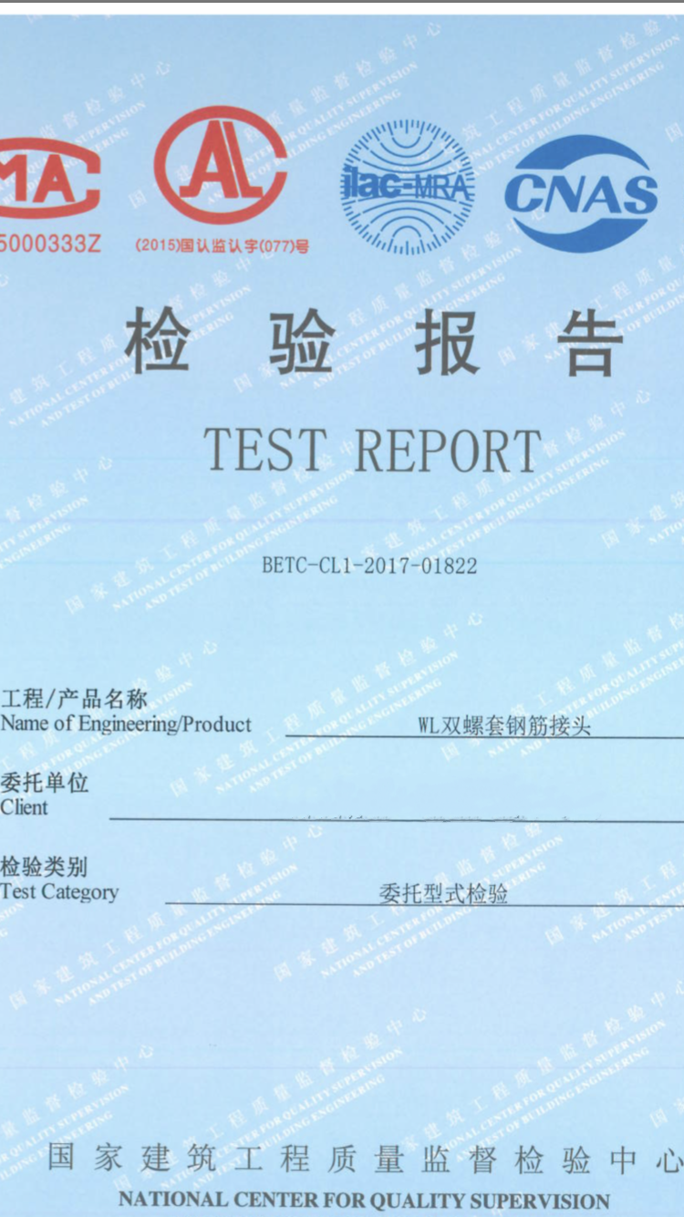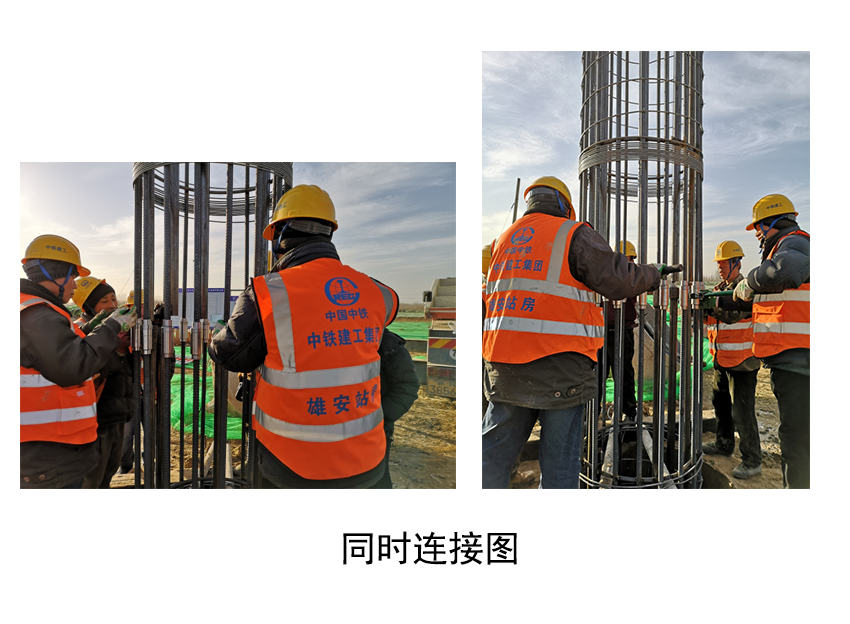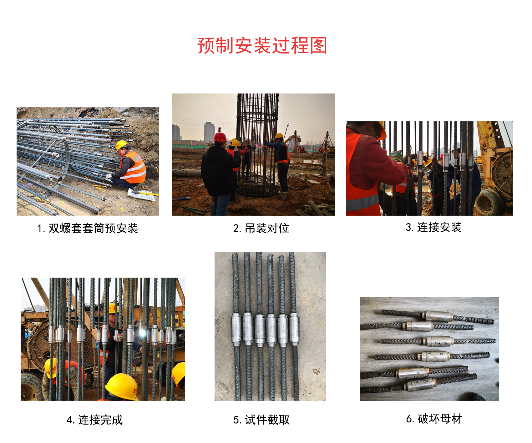 4.连接后验收,整个连接过程16个连接节点,3个钢筋工,用时8分钟完成,所有双螺套套筒连接,均可满足现场割取!