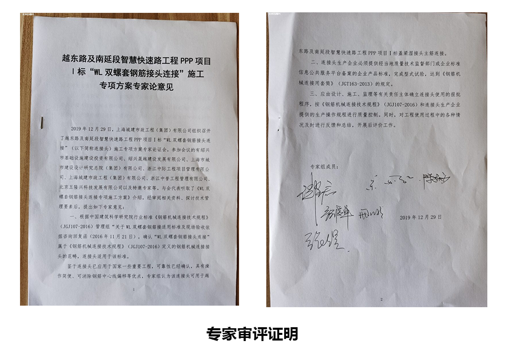 中国检验检测认证联盟《钢筋机械连接接头产品认证》。