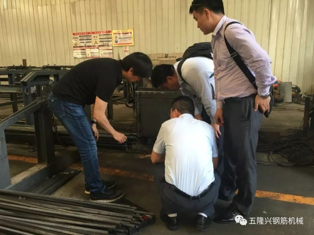During the inspection, Wang Kaiyu, general manager of Wulongxing company, introduced the latest R & D achievements of the company in detail: WL double screw sleeve reinforcement joint and automatic production line for reinforcement straight thread processing. The actual operation of the production line in the workshop was demonstrated. You pay special attention to the automatic steel bar sawing function of the production line, and this production line should be the product with the most complete functions and the highest production efficiency in the market. You look forward to this product serving the nuclear power project as soon as possible.