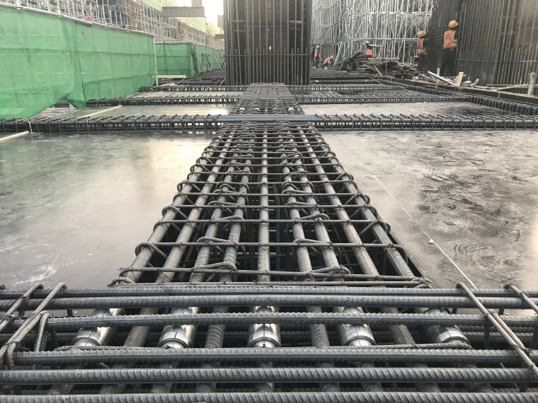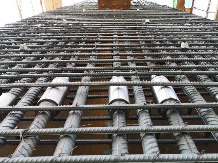 3. A new type of reinforcement joint is used at the middle end of the section steel column to connect two non rotatable reinforcement through the rotating sleeve