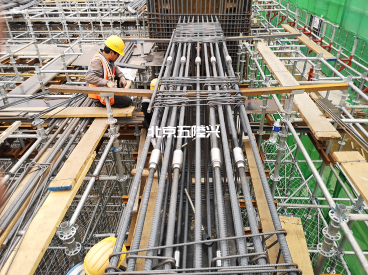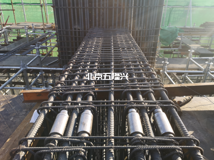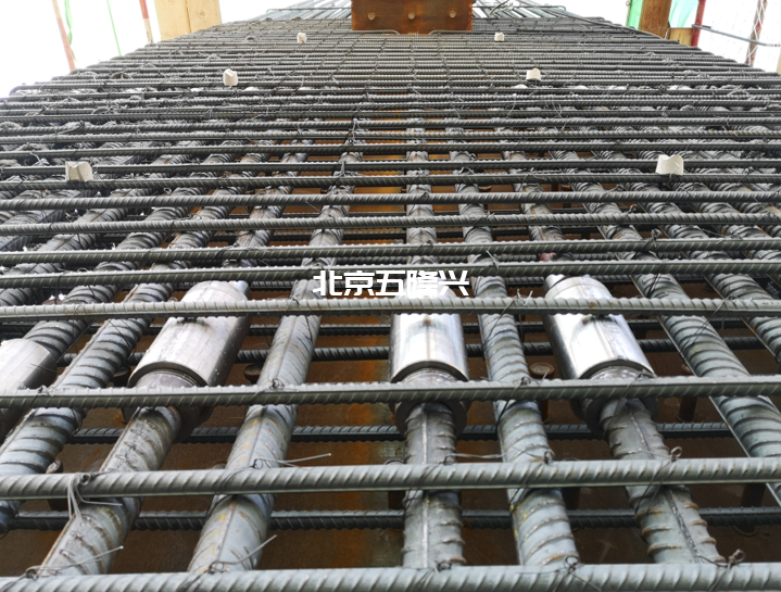 4. After the reinforcement is connected with the section steel column respectively, the reinforcement in the middle cannot rotate. The double screw sleeve connection technology is adopted. During the connection, only the sleeve needs to be adjusted to complete the in-situ connection